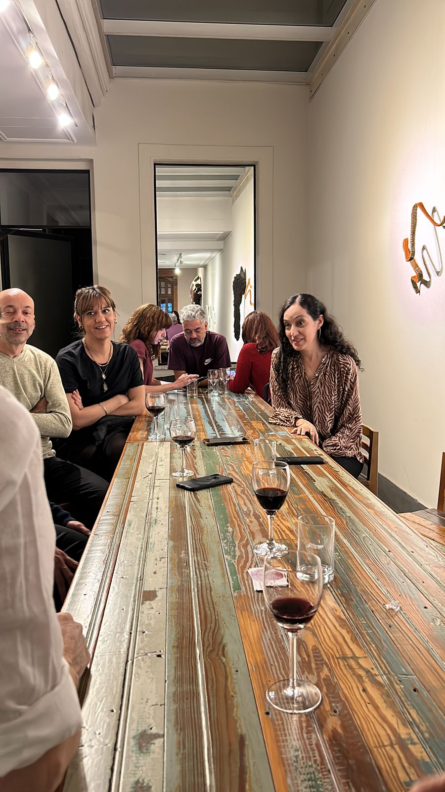 M. Aquilio. Estos trabajos sensibles para los sentidos, piden ser tocados, seducen con su suavidad y sus colores, pero develan al mismo tiempo un conflicto. La estructura geométrica los trae a la realidad de manera ordenada y limpia, intentando suavizar y trasmutar la brutalidad del ciclo de la vida, la belleza salvaje de la naturaleza que nos atrae y nos inquieta al mismo tiempo.