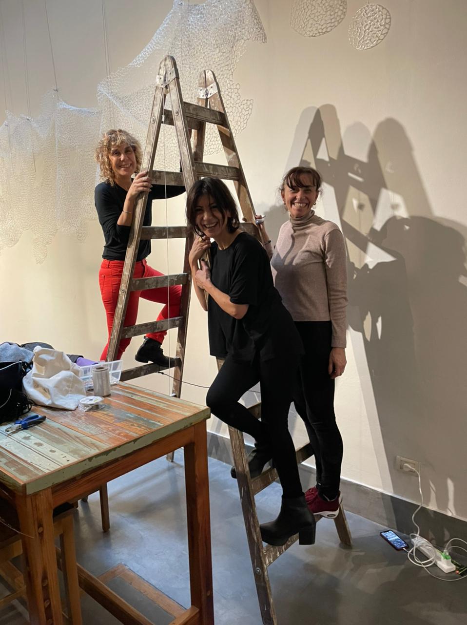 Acompaño a estas tres elegantes, talentosas, y creativas artistas con estas palabras, invitando al espectador a transitar una muestra donde los cuerpos son a veces muy reales, muy tangibles, , muy aprehensibles, , pero muchas otras -tantas más- se esconden traviesos, cobrando formas efímeras, motivando lecturas infinitas, y poniendo en evidencia para el ojo despabilado, que la sombra no es lo opuesto de la luz sino su compañera de ruta inseparable. Que la obra es una, integrada por lo que se ve y lo que se infiere de ella.