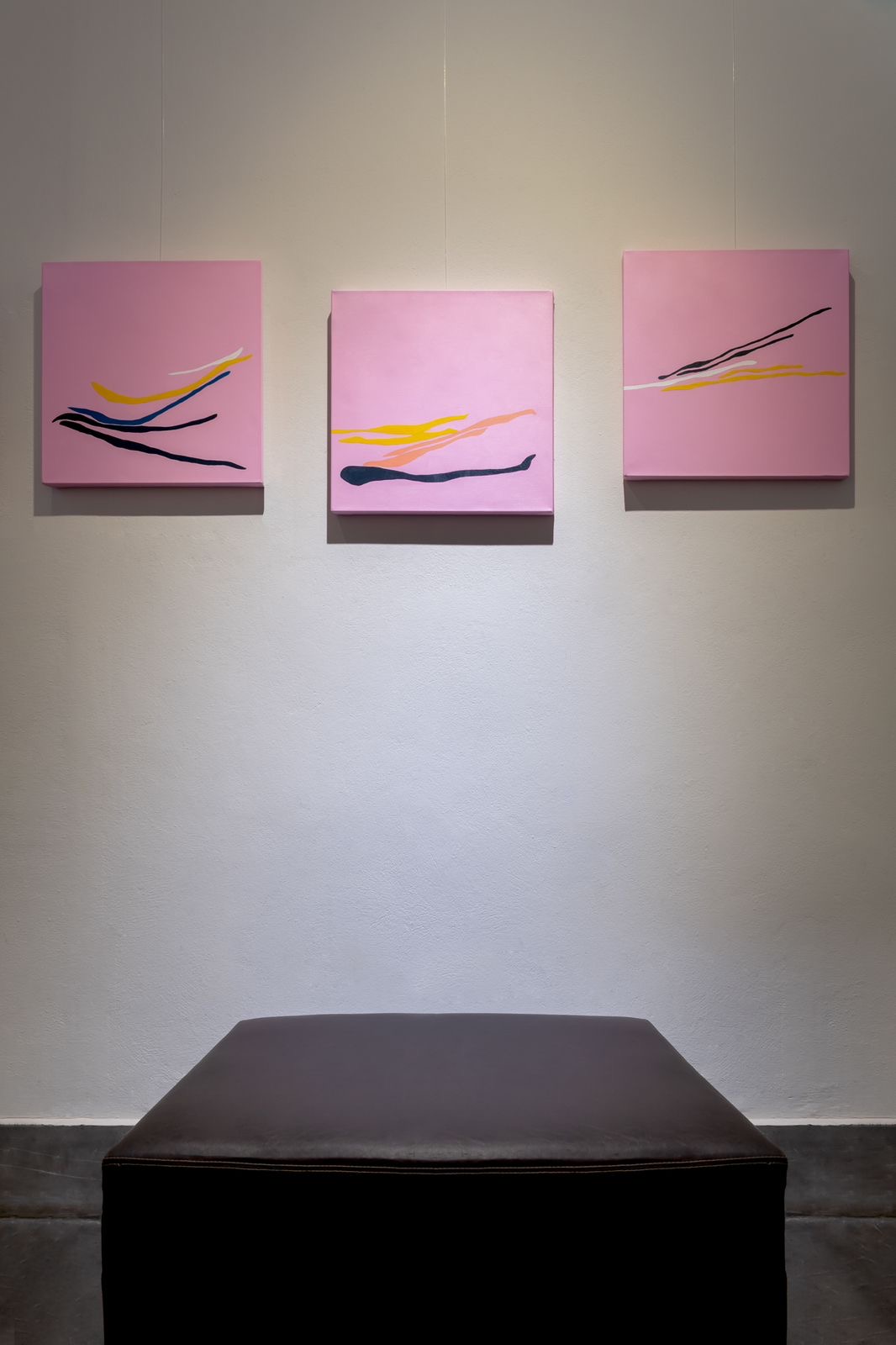 En palabras de la artista, la serie es parte del proceso de obra de los últimos años, la búsqueda se profundiza en la morfología, partiendo de la geometría cruda al balance orgánico, sutil, con una estética minimalista, a mano alzada, es un lenguaje que danza en el lienzo, un inminente roce un delicado equilibrio para evitar el derrumbe, una tensión que no estresa, sí que deleita pacíficamente en una paleta que ya es identidad en mi lenguaje visual y que ofrezco al espectador, sin ninguna ambición de poder, para que el genere su propia historia.